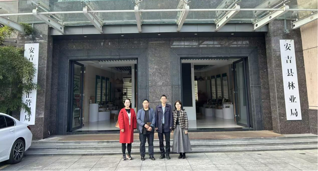 2025年11月11日,为贯彻绿色发展理念、服务国家 “双碳” 战略目标,加强产学研深度融合、提升人才培养质量,中国人民大学应用经济学院拟与浙江农林大学经济管理学院/生态文明研究联合建设“绿色经济与循环商业”MBA项目特色实践与科研基地。浙江农林大学生态文明研究院生态经济研究所所长顾光同教授带队,中国人民大学应用经济学院“绿色经济与循环商业”MBA项目主管张男、浙江农林大学生态文明研究院生态经济研究所陈秀平副教授一同赴安吉林业局调研。