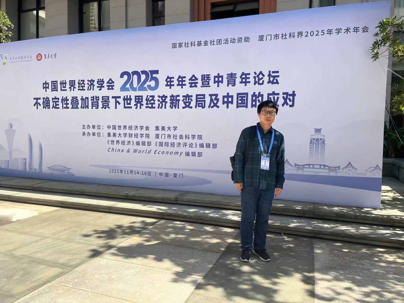11月14日至16日,中国世界经济学会和集美大学在厦门联合举办“中国世界经济学会2025年年会暨中青年论坛”。我院生态经济研究所研究人员、金融硕士点负责人黄建风副教授应邀出席本次会议并做专题报告。中国世界经济学会年会是国内世界经济学科最高级别的学术会议,在国际金融和国际贸易等领域具有重要影响力。本次会议的主题为“不确定性叠加背景下世界经济新变局及中国的应对”。会议获得国家社科基金社团活动资助,并得到《China & World Economy》《世界经济》《国际经济评论》等十多家SSCI/CSSCI学术期刊、《世界经济年鉴》、清华大学出版社、经济管理出版社和厦门市社会科学院的支持。