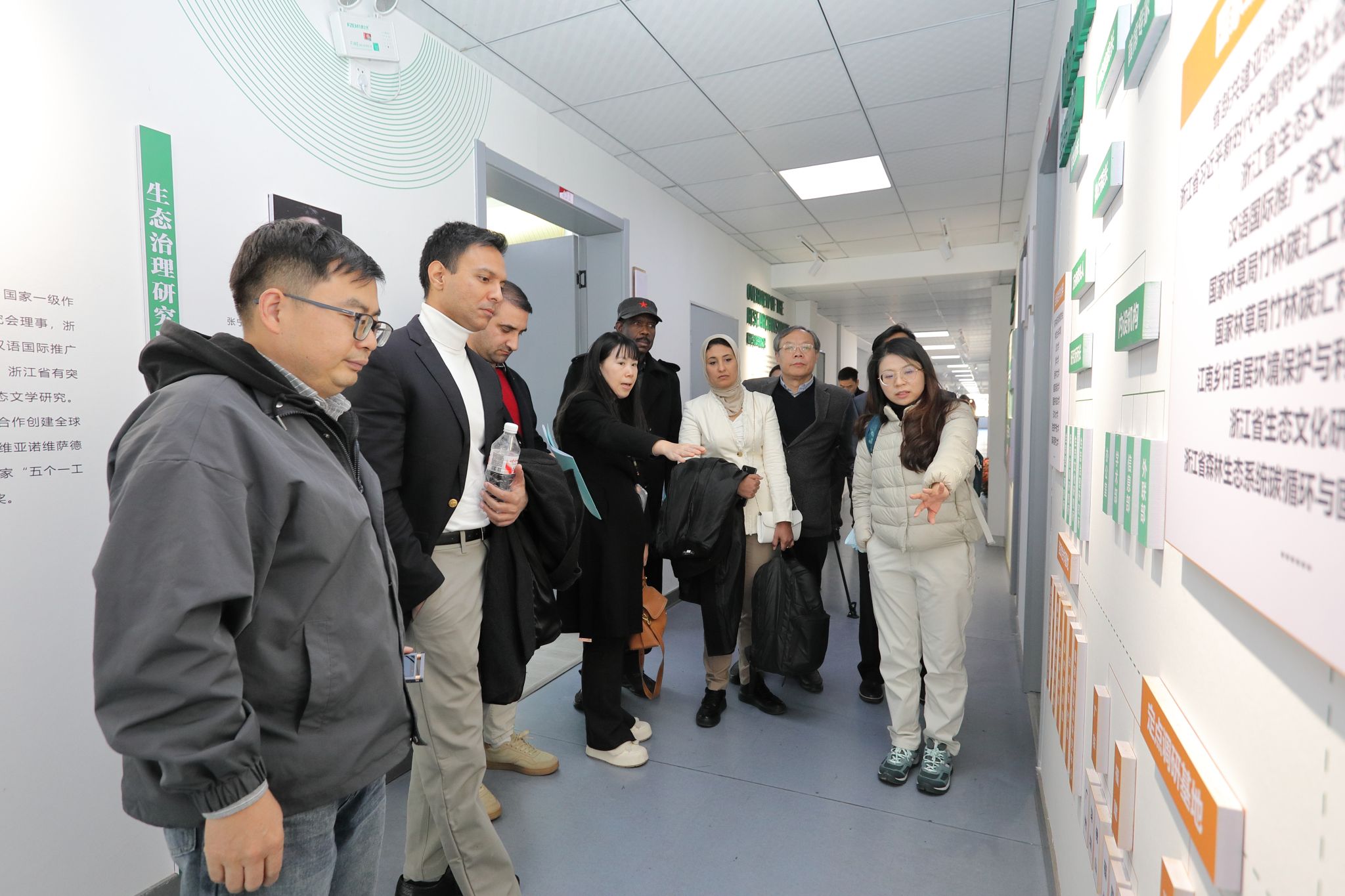 本次学术沙龙期间,中外专家学者参观了浙江农林大学生态文明研究院。作为浙江省新型重点专业智库及生态文明智库联盟牵头单位,研究院在生态价值实现、绿色发展政策等领域的科研积累与国际合作成果受到与会学者的广泛关注。在随后的研讨环节中,中外学者围绕生态价值实现、绿色金融、低碳转型及全球南方国家绿色发展路径等关键议题展开深入交流与富有成效的对话。通过主题发言与圆桌讨论,与会代表分享了研究见解与实践经验,形成了多项建设性共识。此次活动不仅深化了对“两山”理念在现代化进程中实践价值的认识,也为推进全球南方国家生态环境保护与可持续发展提供了重要参考。浙江农林大学生态文明研究院将继续发挥平台优势,积极推动生态文明建设领域的国际学术交流与务实合作。