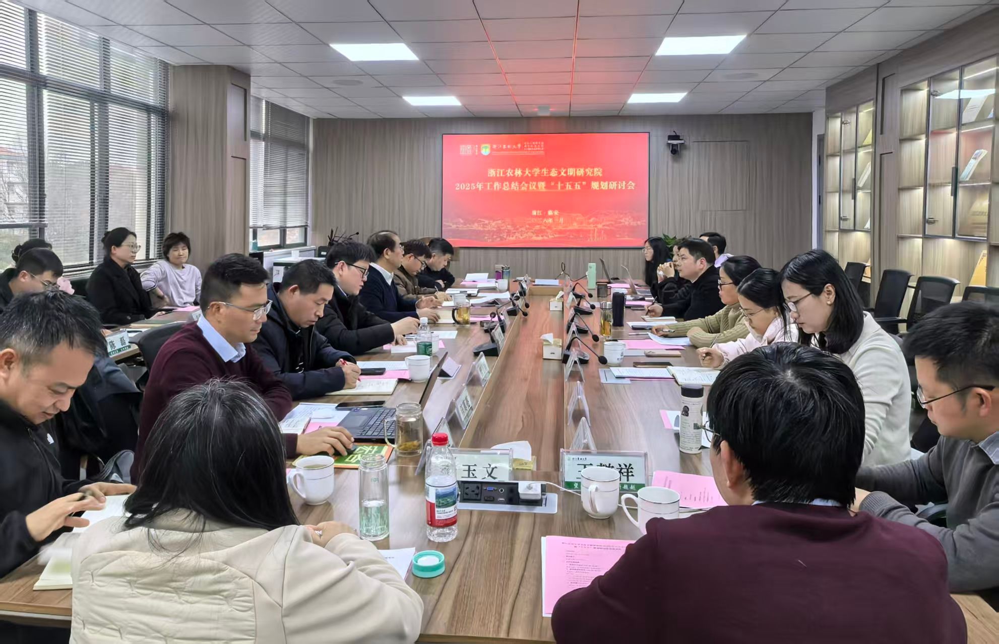 此次会议的顺利召开,不仅全面盘点了研究院 2025 年的发展成果、客观分析了存在的短板,更清晰明确了 2026 年的工作重点,同时通过 “十五五” 规划研讨会,深入研讨了长远发展目标与核心任务、征集了多方建议,为下一阶段的布局谋篇凝聚了共识。相信在全体成员的共同努力下,研究院必将在生态文明研究领域持续突破,既稳步推进年度任务落地,也扎实筑牢 “十五五” 发展根基,为推动我国生态文明建设、深化 “两山” 理念实践贡献更多浙江智慧与农林力量。