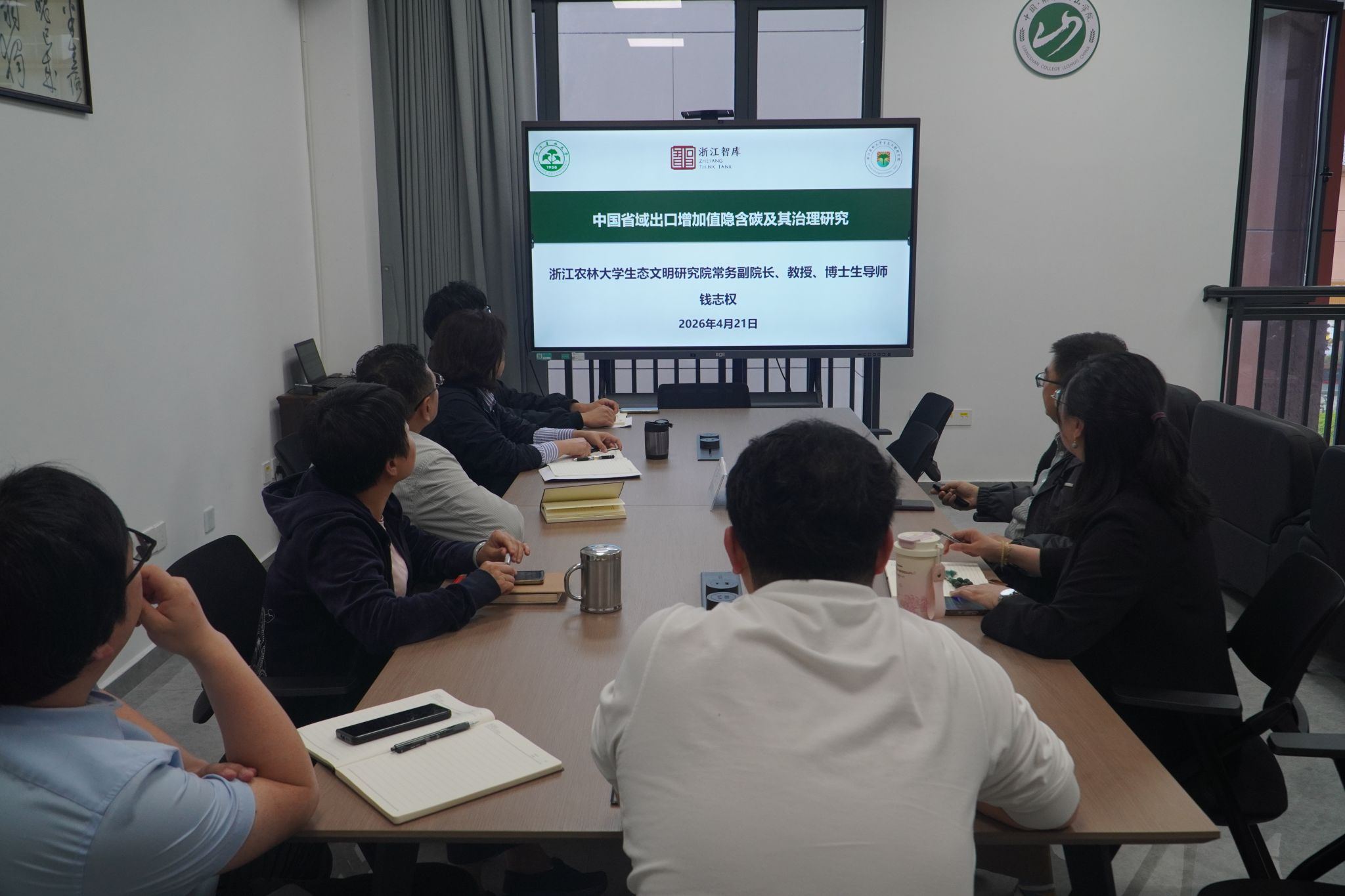 近日,浙江农林大学生态文明研究院常务副院长钱志权教授应邀赴丽水学院中国两山学院,作题为《中国省域出口增加值隐含碳及其治理研究》的学术报告。丽水学院中国两山学院相关专业师生、科研人员齐聚现场,认真聆听报告并参与互动交流,现场学术氛围浓厚,为校地之间的学术探讨搭建了良好平台。