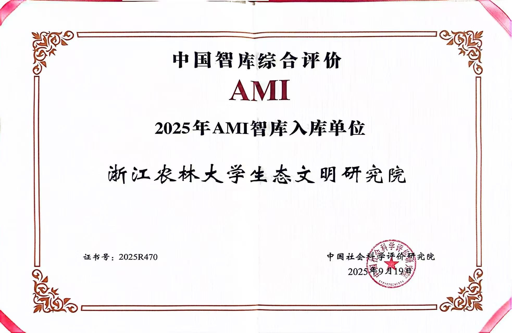 2025年9月19日,在北京举行的第八届中国智库建设与评价高峰论坛上,中国社会科学评价研究院正式公布了2025年度中国智库综合评价AMI入库名单。浙江农林大学生态文明研究院凭借其在生态文明与可持续发展领域的扎实研究、学科交叉优势和显著政策影响力,成功入选2025年度AMI智库名录。