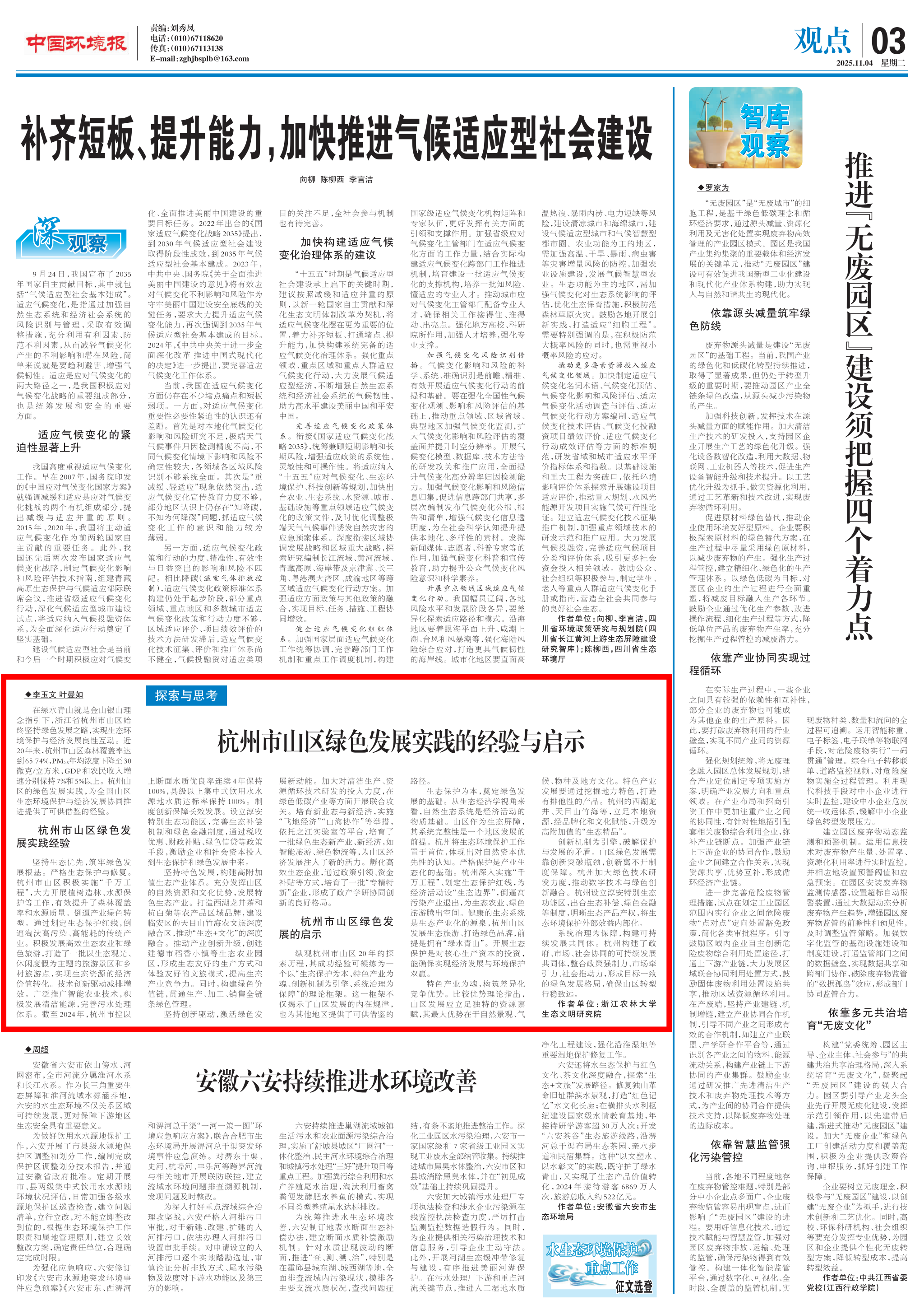 11月4日,浙江省新型重点专业智库 —— 浙江农林大学生态文明研究院信息部部长李玉文教授与研究生叶曼如撰写的理论文章《杭州市山区绿色发展实践的经验与启示》刊登在《中国环境报》上。现将全文转载如下: