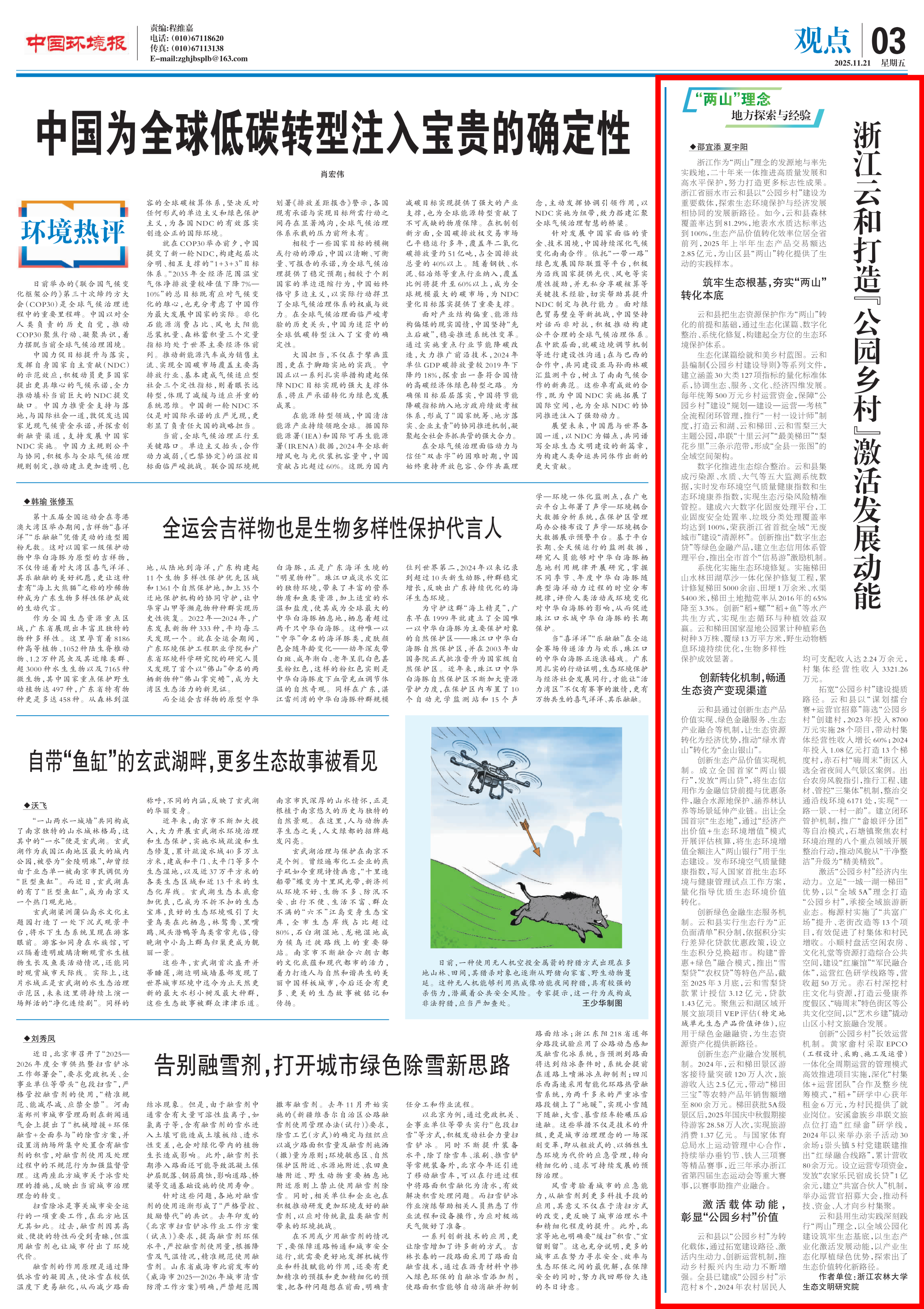 2025年11月21日,浙江省新型重点专业智库——浙江农林大学生态文明研究院生态经济研究所邵宜添和研究生夏宇阳撰写的理论文章《浙江云和打造公园乡村激活发展动能》发表在《中国环境报》上。现将全文转载如下:
