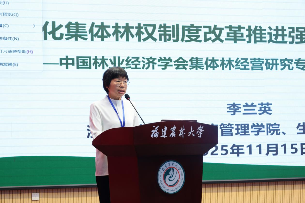 李兰英教授受邀请作了“深化集体林权制度改革的浙江实践”报告,分析了深化集体林权制度改革与乡村全面振兴、通过提质兴业利民实现共同富裕的理论逻辑、从木材经济经生态保护转向森林多功能利用的林业功能定位转变的实践逻辑;在简要介绍浙江集体林改历程的基础上,凝练了浙江“三权分置”时期和深化林改时期的主要创新做法,阐明浙江集体林改在机制创新、生态提质、产业提效、百姓增富和保障增强方面的显著成效;基于“提质兴业利民”的总目标,从要素集聚适配、资产保值增值和利益有效实现角度剖析了浙江林改存在的问题,并探讨了浙江“十五五”深化林改的思路。