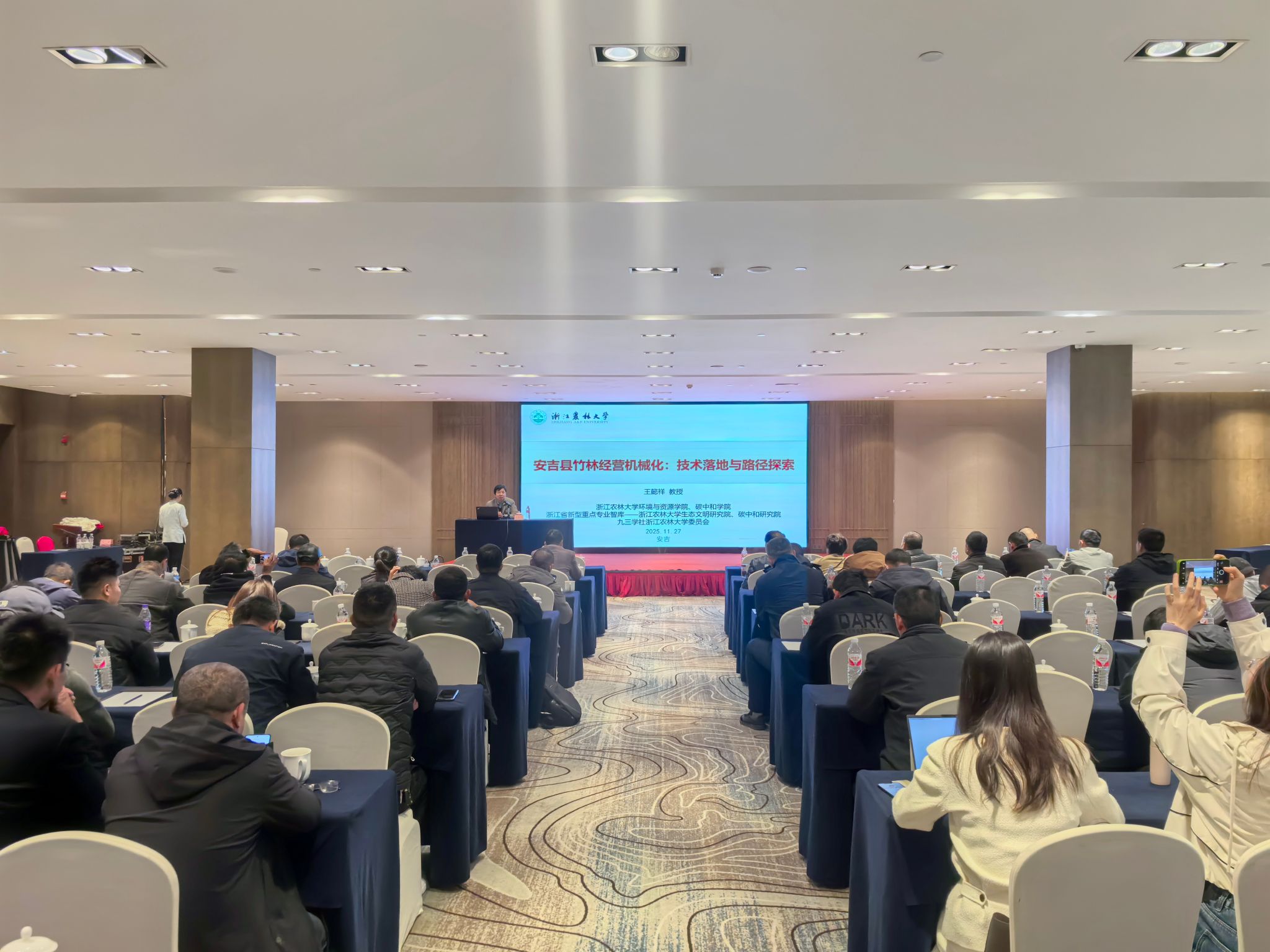 2025年11月26日至27日,湖州市林业机械技术培训班在安吉县顺利举行。本次培训由浙江省林业科学研究院、湖州市林学会、安吉林业局联合承办,旨在系统提升全市林业机械化水平,加快推进竹林经营现代化与林业高质量发展。浙江农林大学生态文明研究院、碳中和研究院低碳发展研究所所长王懿祥教授受邀作专题授课,全市各级林业部门、林场、专业合作社及相关会员代表等90余人参加培训。